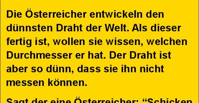 Zumeist wird über das vermeintliche Hinterwäldlertum oder den Geiz gespottet. Der Besitzer sagt ihm, er solle sich exakt an die Anweisungen auf den Schildern halten, dann könne nichts schiefgehen. Er trinkt sein Bier und will seinen Radi salzen, doch aus dem Salzstreuer kommt nichts heraus! Antwort: Ja, klar dafür brauchte ich allerdings deinen rechten Arm und Dein linkes Bein! Steht ein Schwabe auf einer Donaubrücke und sieht einen Mann am Ufer knien und das Wasser aus der Donau trinken. Damit sie ihr Grab selber pflegen können. Die Krautwickel auf das Gemüse legen und zugedeckt im Ofen etwa 45-55 Minuten schmoren lassen. Nach Ende der Garzeit die Sauce durch ein feines Sieb oder ein feuchtes Passiertuch abseihen. Kurz darauf kommt ihm der Schwabe triefnass entgegen.